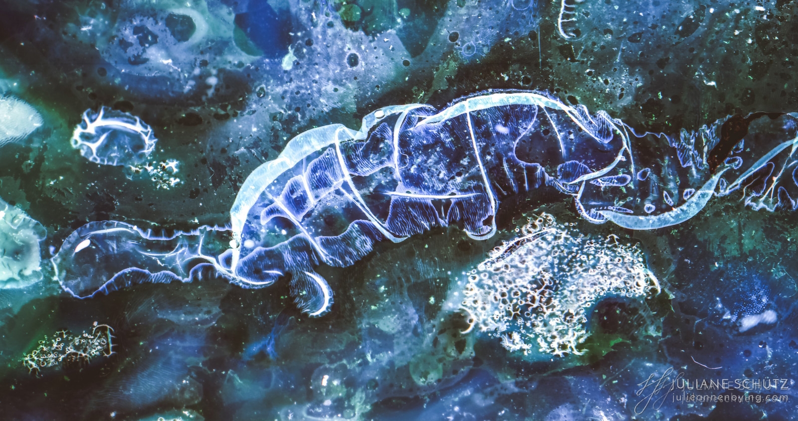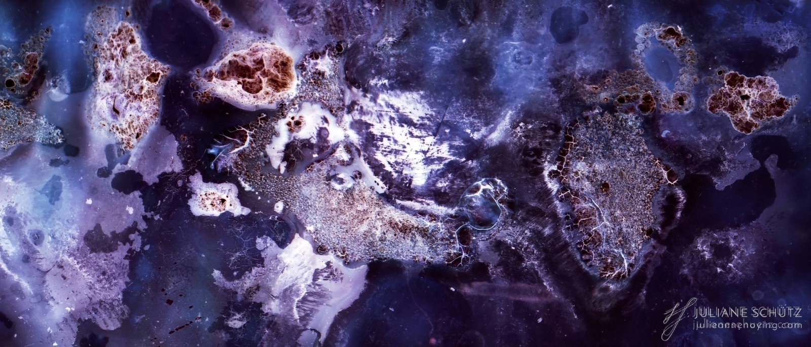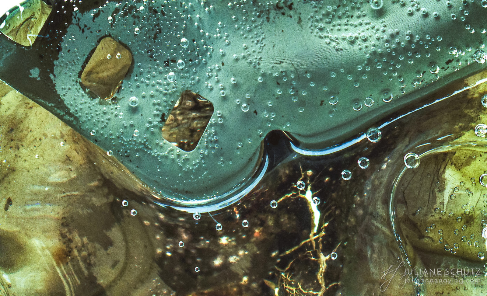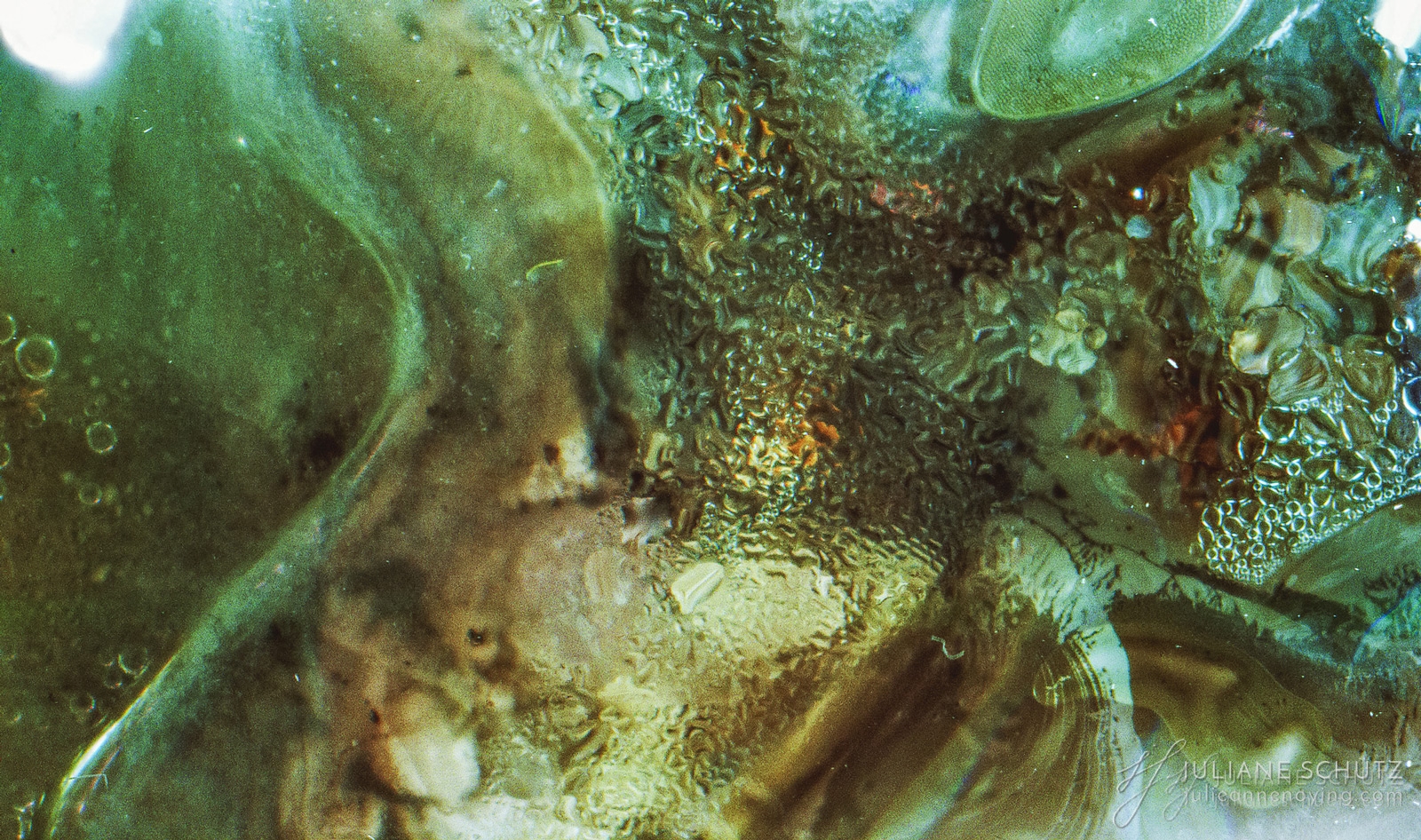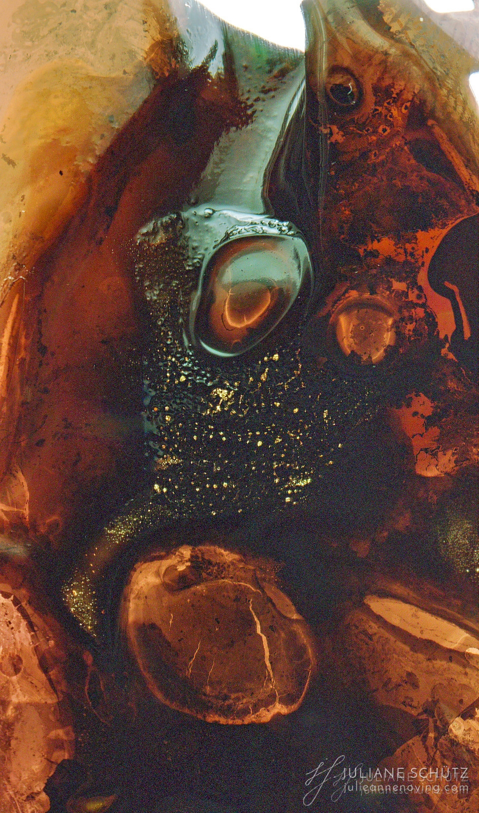 In contrast to normal use where the film is used as a canvas for a photographer's vision of the world, Schütz explores a new and different form of "life" by allowing the film to develop its own form of expression through analog manipulation using household chemicals such as ammonia, vodka, chlorine, acetone, soda and fire.